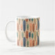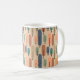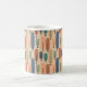 Esta caneca tem uma design moderna do século médio de longas ovais em pêssego, verde, azul, lacrimogêneo e castanho claro com linhas pretas com círculos nas extremidades.