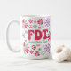 Mostre sua oposição à atual administração Trump com esta caneca Foxtrot Delta Tango retro vibe rosa e roxa