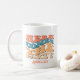 Caneca de café retrô de Despedida de Solteira para as amigas da noiva beberem durante o fim de semana de despedida de solteira . Texto simples que diz Here Comes the Party e tem o nome dela. A caneca perfeita para presentear ou para a tribo da noiva. Veja as canecas The Party correspondentes para a noiva.