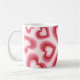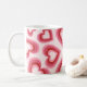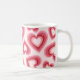 This is a seamless, retro-style heart pattern featuring layered heart shapes in various shades of red and pink. Each heart has a bold, concentric design that creates a 70s-inspired aesthetic, with a light pink background adding a soft, romantic touch. Scattered small white stars add sparkle and visual interest, enhancing the playful and vibrant mood of the design.