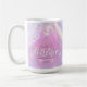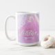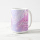 Elegante design personalizado de Despedida de Solteira Disco para caneca em belas cores gradientes que vão do lavanda ao periwinkle e rosa com uma bola disco funky, fonte retrô glamorosa e fundo com luzes de disco cintilantes. Este design sofisticado e elegante é facilmente adaptado para qualquer jantar especial e/ou evento de dança. Busque ID928 para ver outros produtos desta coleção da moda.