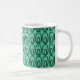 Esta caneca tem um design moderno do século médio de um pequeno dentro oval um oval maior em um campo de hortelã verde.