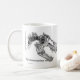 Comece sua manhã fora do direito! Tenha algum café em uma caneca com uma reprodução de um desenho de um rex do tiranossauro. O rex ele mesmo do T. está na exposição no Museu Nacional da história natural, em Washington, C.C.