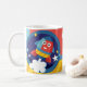 Design feliz brilhante do foguete que sopra fora no espaço.