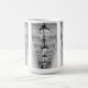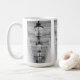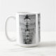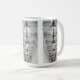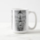 A white ceramic mug featuring a classic black symmetrical inkblot design, reminiscent of a Rorschach psychological test.