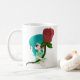 Tome Rosa, da minha série Wingz, na sua caneca para suas bebidas. Possuir seu possível personagem favorito, de quando ela era jovem, segurando uma Rosa, e como uma versão de chibi de si mesma, numa caneca.