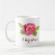 Uma design feminina encantadora com um brilhante rosa de cor da água fuchsia com sotaques de folha e um nome personalizado. Insira seu nome no lugar do nome de exemplo mostrado em ambos os lados desta caneca para um presente personalizado ou para tratar você mesmo.