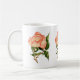 Rosas à volta da caneca com cor de pêssego e folhagem. Da minha pintura original. Cheio e brilhante.