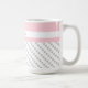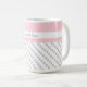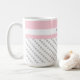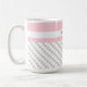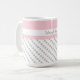 Bonita caneca de café personalizada em tons de trendy de rosa e cinza. Dispersão de bolinhas de cinzas em branco, com um banner de cor rosa suave na parte superior. Personalize com qualquer nome ou ditado. Perfeito para dar presente, ou fazer um para você mesmo! As canecas de café estão disponíveis em diversos estilos e tamanhos.
