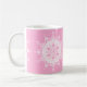 Esta mandala branca senta-se sobre uma rosa claro de fundo. A cor é simples e feminina. Parte da Coleção Fenten Mandala.