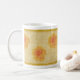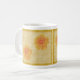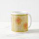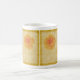 Rosas de laranja russos com uma fronteira destruída. Uma caneca estilo country com classe.