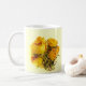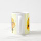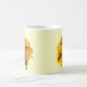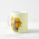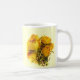 Esta linda caneca apresenta uma composição vitalícia de rosas requintadas secas em um fundo amarelo. As pétalas têm cor entre amarelo pálido e ouro até um damasco laranja profundo. A imagem é repetida nos lados direito e esquerdo.