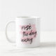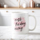 Seu segredo está seguro conosco...não contaremos a ninguém que há realmente vinho na caneca. Design de beleza e tendência para amantes de vinho apresenta "rosé o dia a dia" em tipografia de pincel em estilo manuscrito preto sobre fundo de aquarela cor-de-rosa-pincel.