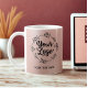 If you're looking for a sophisticated way to brand your business without the sparkle, this minimalist mug is the perfect choice. It features a soft, elegant matte rose or blush pink background (without simulated glitter), giving it a refined, feminine feel. replace it with your own logo and qr code