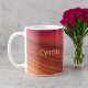 Digite seu nome para personalizar esta xícara e ela aparecerá em uma cor dourada. Não quer o seu nome nele? Em seguida, exclua o nome do marcador de posição. Este design abstrato está um pouco fora deste mundo, ou talvez debaixo da terra, com camadas laranja, marrom e douradas de estratos marmorizados. Semelhante às camadas de um agato ou geode, esse design parece minério se misturando ou talvez algumas nuvens galácticas cósmicas. É bonito para a sua imaginação! As cores ricas giram e se juntam num design sujo, mas cósmico, disparado pelo seu monograma em letras douradas de ambos os lados.