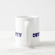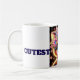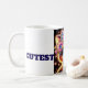 Um design de caneca de café branca e adorável, com um gato coroado de olhos azuis cintilantes. Os detalhes intrincados e as cores vibrantes criam uma atmosfera mágica e encantadora.