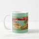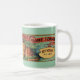 Uma etiqueta de Fruta da Marca do Tigre Real reposta numa caneca.