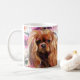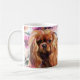 Mug clássico com design de Ruby Cavalier Charles Spaniel art. fundo floral. Texto no verso, "A vida é melhor com um Ruby Cavalier". cores rosa antigas. Faz um presente de excelente.