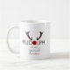 Engraçado caneca Holiday lendo Rudolph é meu animal espiritual com design de tipografia no nariz vermelho. Esta caneca de Natal fofa é o presente perfeito para uma criança, namorada, ou esposa que ama Rudolph, a rena vermelha e nariz.