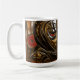 Modern metallic profile portrait in gold, rust, and black on a ceramic mug, with embossed lines and a textured industrial background.