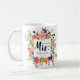 Depois do casamento, mostre seu novo sobrenome com essa engraçada A futura SRA. Tipografia MUG com um quadro floral de rosas e folhas Borgonha e amarelas Coordenadas à coleção de casamentos e acessórios do Rustic Bloom.