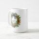 This beautifully designed holiday coffee mug features elegant watercolor artwork of a wreath adorned with a black and white buffalo check bow, pinecones, holly leaves, red berries, and pine needles. Its classy yet rustic design, along with the customizable "Happy Holidays" text, captures the essence of the December holiday season, making it a thoughtful choice for spreading holiday cheer.