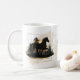 Celebrar aniversários com encanto rústico usando esta caneca personalizada com uma silhueta de cavalo agitado em greve na Montanha Rocky contra uma floresta e fundo solar. O design de pincelada de terra lhe dá uma sensação pintada à mão, enquanto o texto personalizável lhe permite adicionar um nome ou mensagem, fazer-a de uma forma cuidadosa. Perfeito para amantes de cavalos, proprietários de fazendas ou qualquer pessoa que aprecie o estilo de inspiração ocidental, esta caneca de cerâmica duradoura é na moda e prática para café matinal, chá ou cacau quente. Um presente sincero que é tão único como o cavaleiro na sua vida.