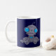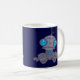 Imagem vetorial de um robozinho fofo, mas triste, com olhos azuis sentados no chão.