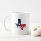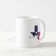San Antonio, caneca de café com bandeira do Texas. Este design apresenta "San Antonio" em uma escrita, letra de estilo caligráfico em branco com contorno de cinza clara no topo do mapa do estado que está preenchido com a bandeira do Texas. Esta caneca de café da cidade é uma forma excelente de apreciar o seu café e mostrar que se orgulha de ser de San Antonio, TX.