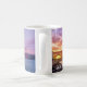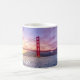 Caneca de café que caracteriza uma imagem bonita do por do sol de golden gate bridge em San Francisco.