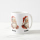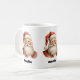 Uma caneca com uma bela ilustração retrô. Papai Noel com uma barba branca e arbusta vestindo seu terno vermelho tradicional.