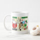 O papai noel do personagem de desenho animado que observa o refrigerador de água bisbilhota entre seus rena e duende em sua oficina. Aprecie sua bebida favorita do yuletide com esta caneca de café temático do feriado bonito e cómico, caracterizando a arte original do personagem de desenho animado de Marty Qatani
