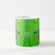 Fotografia de um sapo verde australiano, Sapo de árvore branca ou Sapo de árvore burra contra fundo de folhas verdes. Imagem impressa em ambos os lados da caneca.