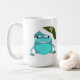 Um legal sapo azul de boca larga em um chapéu de Natal.