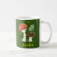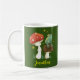 Um conto de fadas bonito inspirou a ilustração de um príncipe sapo sentado sobre um cogumelo e observando os pirilampos. A caneca temida do sapo de floresta Whimsical é personalizável e permite que você acrescente seu nome!
