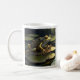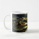Douradas engrenagens de metal e sapo em uma almofada de lírio gerada por IA steampunk.