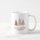 O design festivo de caneca sazonal apresenta uma exibição elegante de árvores de Natal nevadas em vermelho, dourado e rosa em um fundo transparente. Abaixo das árvores, a seção "Saudações de Fim de Ano" é apresentada em tipografia clássica elegante. Adicione um nome personalizado ou linha de texto personalizado em script vermelho correspondente com o modelo fácil de usar. Por favor, envie mensagem ou e-mail para beachpausedesigns@gmail.com para personalizações adicionais.
