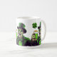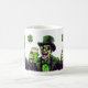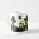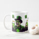 Celebrar Rua. Dia de Patrick em estilo vibrante com esta caneca de cerâmica toda branca com um personagem divertido, de pele verde, vestida de trajes verdes festivos! A personagem estiva uma gravata arco e óculos verdes fechados, sorrindo amplamente enquanto segurava um copo cheio de uma bebida verde gelada revestida de espuma amarela e folhas de shamrock. Com esta design divertida impressa em todos os três lados da caneca, é perfeito para adicionar um toque de alegria irlandesa à sua rotina matinal ou como um presente animado para a temporada de férias.