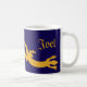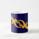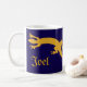 Geckoes de ouro interligados na silhueta. Todos precisam de uma ou duas lagartixas. Design de Tinta Única. Geckoes ouros, púrpura escura/caneca azul. Edite o nome para personalizar, ou simplesmente exclua-o para um presente simples e na moda.