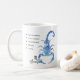 Um estelar Scorpio assina caneca de café com belos trabalho de arte de escorpião, sinal de Scorpio, símbolo e traços de personalidade. Datas de nascimento de 23 de outubro - 22 de novembro.