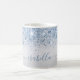 Um fundo com aparência de prata falsa, decorado com poeira brilhante azul. Personalize e adicione o seu nome escrito com um script de estilo alfanumérico com letra de tendência com alternâncias. Para manter as hastes, exclua apenas o nome da amostra, deixe os espaços ou emoji na frente e depois do nome.