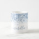 Um fundo branco-na moda, decorado com poeira brilhante azul. Personalize e adicione o seu nome escrito com um script de estilo alfanumérico com letra de tendência com alternâncias. Para manter as hastes, exclua apenas o nome da amostra, deixe os espaços ou emoji na frente e depois do nome.