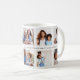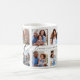 Envie um belo presente personalizado ao seu pai (pai) que ele vai apreciar para sempre. Uma caneca especial personalizada de colagem de fotos para mostrar suas próprias fotos e memórias da família especial. Nosso design apresenta um simples design de grade de colagem de 10 fotos com "Pai" projetado em um belo estilo de script preto manuscrito. Cada foto é emoldurada e centrada em uma simples borda dourada. Personalizar com nomes de família.