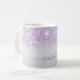 Caneca De Café Script glamoroso do nome da brilha roxa prateada