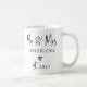 Esta caneca branca e preto moderna apresenta seu sobrenome e legal, escrita à mão que diz "Sr. & Sra.", junto com um coração marcado. Um chic e elegante guardião de casamento para os recém-casados!