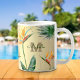 Caneca De Café Script Monograma Floral de Folhagem de Palma Tropi
