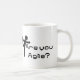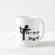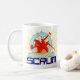 Caneca colorida com os trabalhadores que balançam malhos sobre um símbolo ágil/scrum em um lado. O outro lado caracteriza uma figura da vara que estica com a pergunta, "é você ágil?"