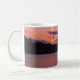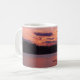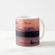 Uma silhueta de uma pessoa que sculling em um lago no por do sol.