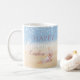 Uma bonito caneca da praia Costeira de Seashell, composta por uma praia litorânea de cor d'água e um fundo do mar azul com conchas e cordas de luz. Faz um belo presente de aposentadoria para seu colega de trabalho, colega de trabalho, funcionário, membro da família e amigos. Todo o texto pode ser personalizado conforme necessário e depois personalizado com um nome, mensagem e data.