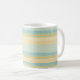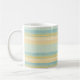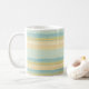 An elegant mug featuring the traditional Japanese "Seigaiha" wave pattern in a modern interpretation. The beautiful stripe design combines serene blue-green tones with warm golden hues, creating a contemporary expression of classical Japanese beauty. The wave motifs symbolize peace and good fortune, bringing tranquility to your daily coffee moments.